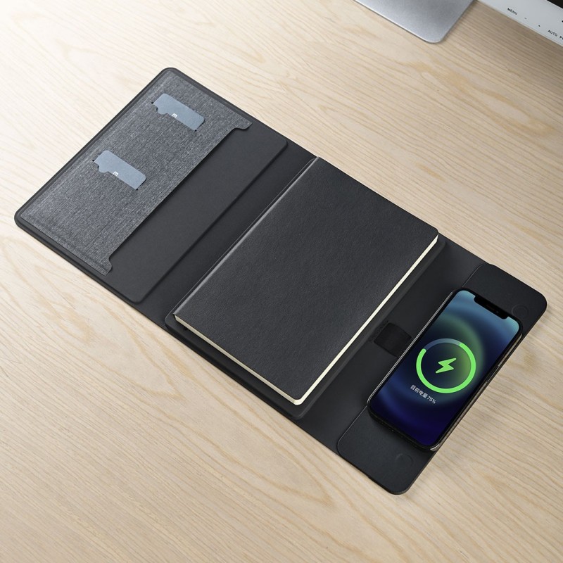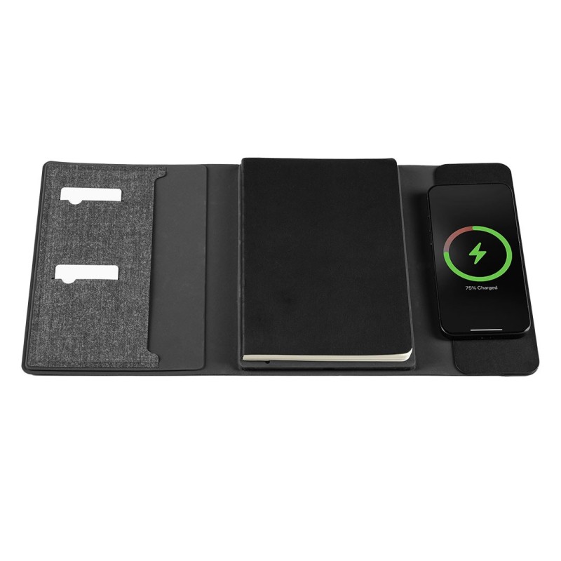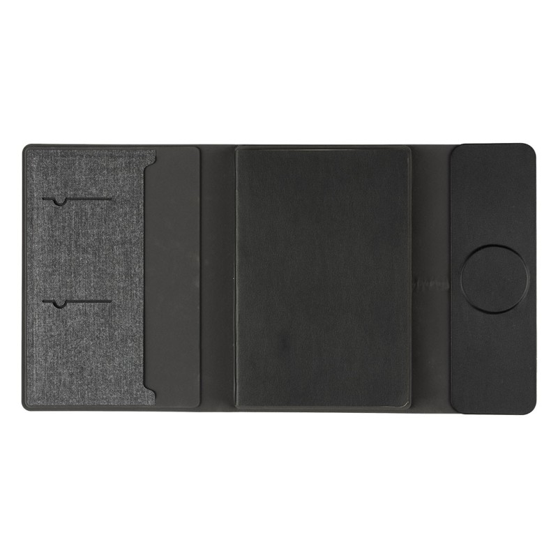 FULTON 3IN1, magnetic, portfolio case with a5 notebook, power bank 5.000 mah, wireless charger for three devices in a gift box, dark gray