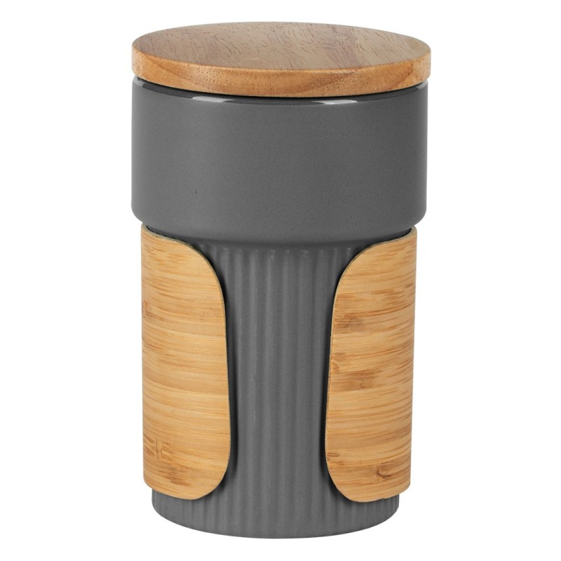 LARS, stoneware mug with bamboo lid and holder, 340 ml, dark gray