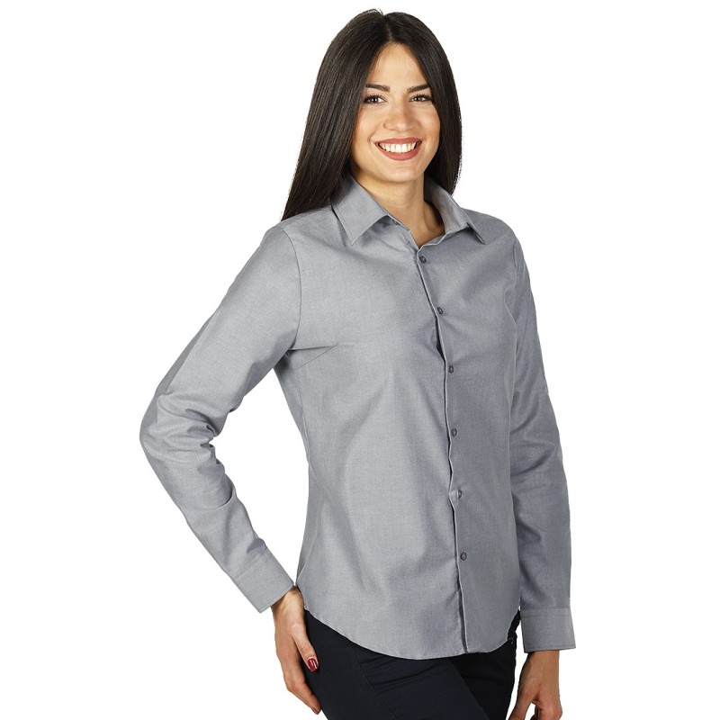 OXFORD LSL WOMEN, women's long sleeve shirt, classic adjusted fit, gray