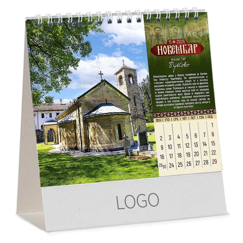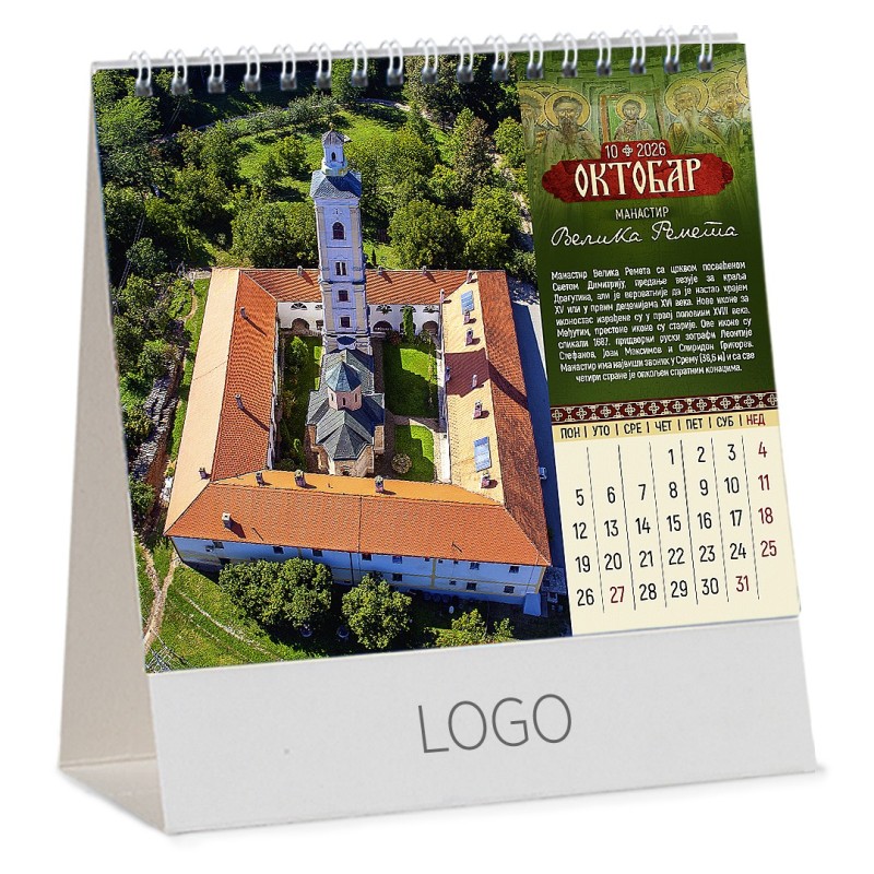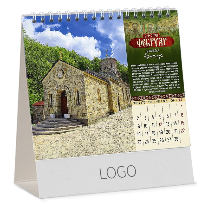 PRAVOSLAVNI MANASTIRI 13, desk calendar, 15 pages, 15.5 x 13 cm